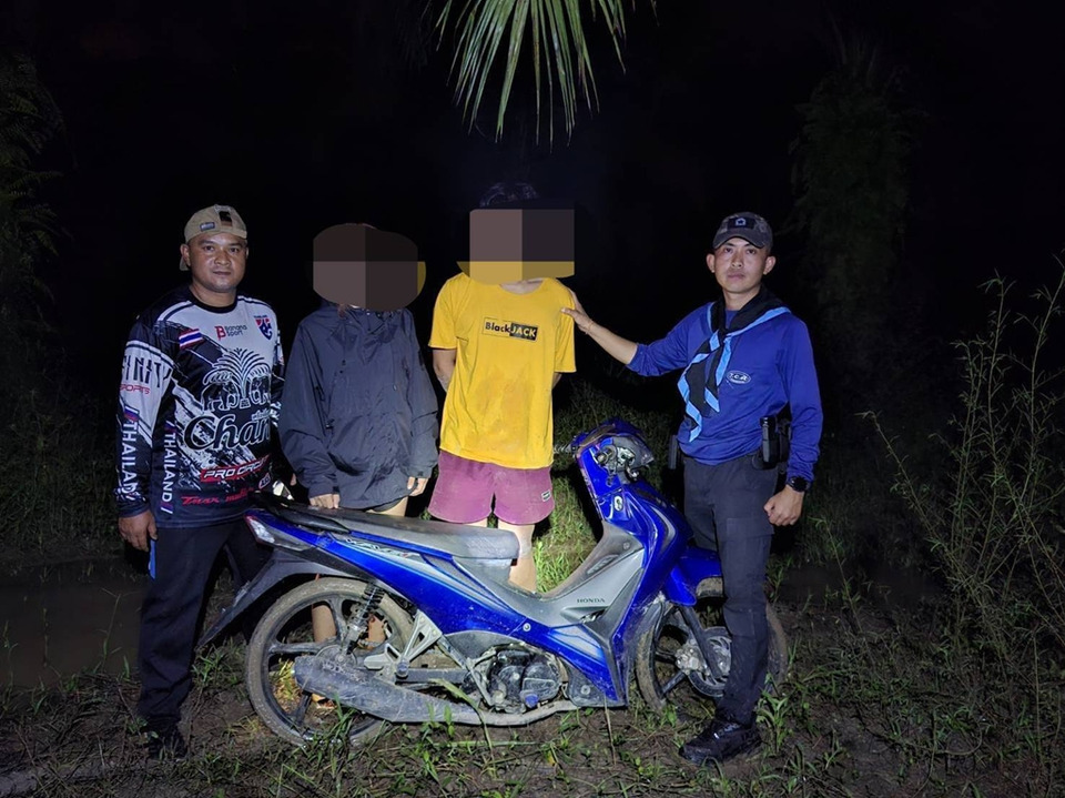 สืบเนื่องจากเมื่อวันที่ 14 ต.ค.68 เวลาประมาณ 19.30 น. ร.อ.ยุทธณา สีไชย์ ผบ.ร้อย.ฉก.ทพ.2110 ได้รับแจ้งจากชาวบ้านว่าจะมีการลักลอบนำยาบ้ามาส่งที่บริเวณกระท่อมดังกล่าว จึงได้สั่งการให้ ร.ต.พิสุทธิ์ ไชยกมล รอง ผบ.ร้อยฯ พร้อมชุดปฏิบัติการร่วมกับหน่วยงานความมั่นคงฯ ออกลาดตระเวนและเข้าซุ่มเฝ้าตรวจสถานที่รับแจ้ง กระทั่งเวลาประมาณ 21.30 น. พบ 2 ผู้ต้องหาดังกล้าวขับ จยย. ฮอนด้าเวฟสีน้ำเงิน ไม่ติดแผ่นป้ายทะเบียน เข้ามาจอดหน้ากระท่อมดังกล่าวเจ้าหน้าที่จึงแสดงตัวเรียกทั้ง2 เมื่อเห็นเจ้าหน้าที่มีอาการพิรุธพยายามจะวิ่งหลบหนี แต่เจ้าหน้าที่ควบคุมตัวเอาไว้ ทั้ง 2รับสารภาพ พวกตนเสพยาบ้ามาก่อน เจ้าหน้าที่จึงตรวจค้นตัวทั้งสอง และรถจักยานยนต์ พบ ยาบ้าจำนวนหนึ่ง
