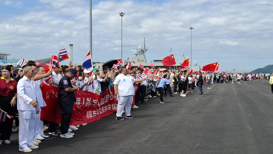 วันที่ 16 ตุลาคม 2568 ที่ท่าเทียบเรือจุกเสม็ด ฐานทัพเรือสัตหีบ จังหวัดชลบุรี พลเรือเอก กรวิทย์ ฉายะรถี ผู้บัญชาการกองเรือยุทธการ ร่วมด้วย พลเรือตรี สุรศักดิ์ เฉิดผาด ผู้อำนวยการกองการท่าเรือฐานทัพเรือสัตหีบ และนายจาง เจี้ยนฮุ่ย เอกอัครราชทูตสาธารณรัฐประชาชนจีนประจำประเทศไทย พร้อมกำลังพลกองทัพเรือไทย ร่วมให้การต้อนรับ กองเรือที่ 83 (ปาซาน) ของกองทัพเรือจีน เดินทางเยือนไทยอย่างเป็นทางการ ระหว่างวันที่ 16–20 ตุลาคม 2568 ซึ่งเป็นหมู่เรือฝึกนักเรียนนายเรือจีน 2 ลำ พร้อมกำลังพลกว่า 1,200 นาย เพื่อฝึกปฏิบัติในทะเลต่างประเทศและเสริมสร้างความร่วมมือทางทหาร เนื่องในวาระครบรอบ 50 ปีความสัมพันธ์ทางการทูตไทย–จีน