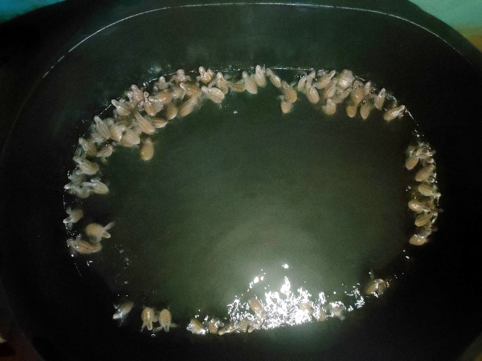 เจ้าหน้าที่จึงได้เตรียมนำลูกเต๋าไปอนุบาลโดยการนำกระมังใส่น้ำทะเลไปขุดหลุมในพื้นหาดทรายจำลองให้มีสภาพบรรยากาศคล้ายทะเลธรรมชาติจริง จากนั้นได้เซาะร่องพื้นทรายจากหลุมไข่เต่าให้เชื่อมต่อกับกระบะที่ใส่น้ำทะเล เพื่อบังคับให้ลูกเต่าได้คลานออกจากรังเดินมาตามร่องทรายที่ทำไว้แล้วลงไปอยู่ในกะละมังน้ำคล้ายกับลูกเต่ากำลังคลานลงทะเล จากนั้นเจ้าหน้าที่มูลนิธิฟื้นฟูทรัพยากรทะเลสยามและเจ้าหน้าที่อุทยานแห่งชาติอ่าวสยาม จึงได้นำลูกเต่าไปใส่กระบะทรายที่เตรียมไว้เพื่อเตรียมนำไปอนุบาลต่อ ให้ลูกเต่ามีความแข็งแรงก่อนนำไปปล่อยคืนสู่ธรรมชาติ ป้องกันไม่ให้เป็นเหยื่ออาหารของสัตว์อื่นๆ พร้อมกับเฝ้าระวังและเก็บข้อมูลตลอด 24 ชั่วโมง หลังจากครบกำหนดและเต่ามีความสมบูรณ์แข็งแรงดีแล้วก็จะนำไปปล่อยคืนสู่ธรรมชาติทางทะเลต่อไป โดยลูกเต่าที่ฟักตัวออกมานี้มีอัตราการรอดตายอยู่ที่ 74%