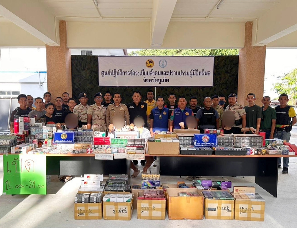 ฝ่ายปกครองภูเก็ตบุกทลายแหล่งค้าบุหรี่ผิดกฎหมาย 4 จุด ยึดของกลางรวมกว่า 90 หมอน มูลค่าหลายแสนบาท