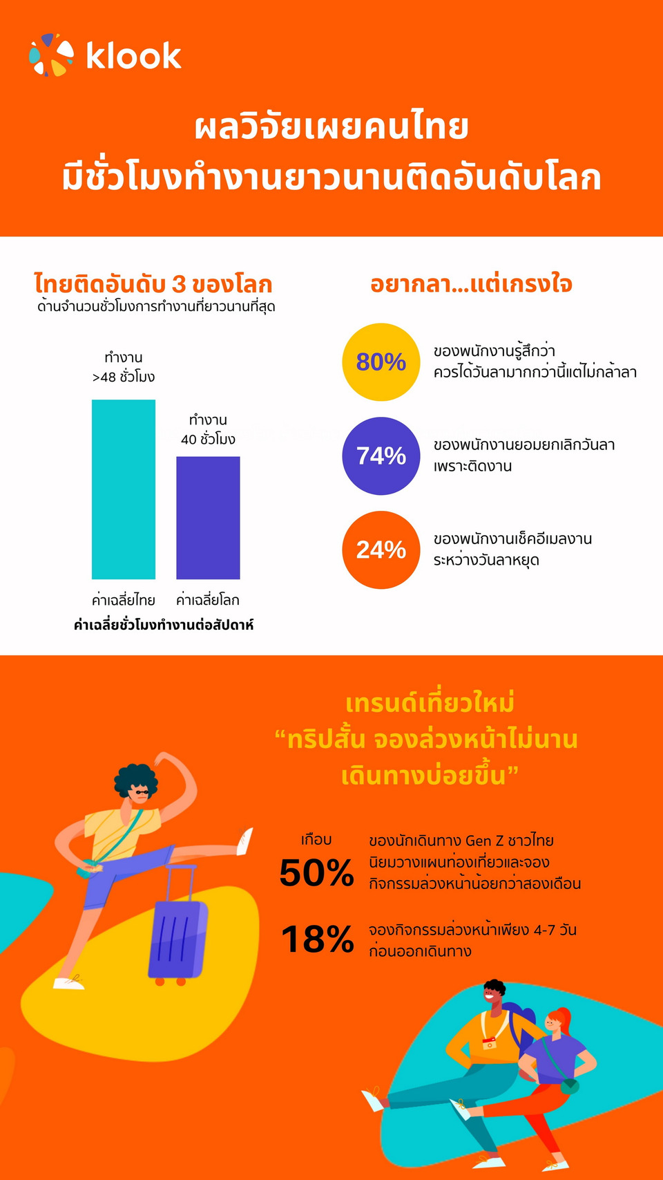 Klook แพลตฟอร์มท่องเที่ยวและกิจกรรมชั้นนำของเอเชีย เปิดตัวแคมเปญปลายปี “ไป ลา มา Klook” เพื่อปลุกให้คนไทย “ลา…ออกไปเที่ยว ”ผ่านการใช้วันลา เพื่อเดินทางไปพักผ่อนอย่างเต็มที่ในช่วงสิ้นปี หลังพบข้อมูลเชิงลึกว่าคนไทยเผชิญภาวะหมดไฟ(burnout) อย่างแพร่หลาย แต่กลับลังเลที่จะหยุดพักเพราะวัฒนธรรมความเกรงใจและความรู้สึกผิดที่หยุดงาน