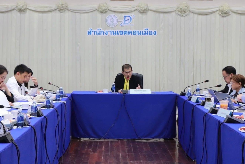 วันพฤหัสบดีที่ 16 ต.ค.68 นายสมบัติ กนกทิพย์วรรณ ผู้อำนวยการเขตดอนเมือง มอบหมาย นางปิติพูน วิมลกิตติพงศ์ ผู้ช่วยผู้อำนวยการเขตดอนเมือง พร้อมคณะผู้บริหารเขต และเจ้าหน้าที่ที่เกี่ยวข้อง ร่วมให้ข้อมูลและรายงานผลสำเร็จของการดำเนินงานในแต่ละตัวชี้วัดหลัก (KRs) รวมถึงปัญหาอุปสรรค และการแก้ไขปัญหาความเดือดร้อนของประชาชน แก่คณะผู้ตรวจราชการกรุงเทพมหานคร ซึ่งมี นายโกวิท ยงวานิชจิต ประธานคณะกรรมการฯ (ผู้ทรงคุณวุฒิ) ในการตรวจติดตามและประเมินผลการปฏิบัติราชการของหน่วยงานสังกัดกรุงเทพมหานคร ประจำปีงบประมาณ พ.ศ. 2568 (ระยะสิ้นปีงบประมาณ) ณ สำนักงานเขตดอนเมือง