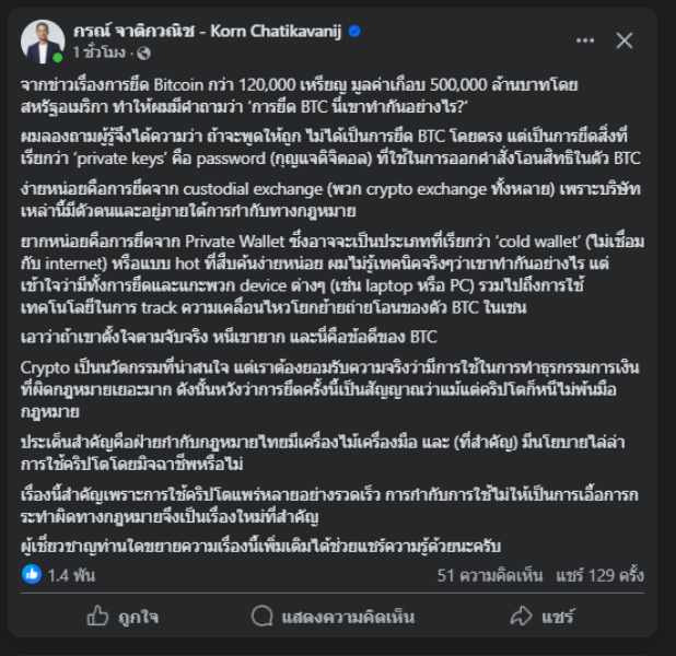 Crypto เป็นนวัตกรรมที่น่าสนใจ แต่เราต้องยอมรับความจริงว่ามีการใช้ในการทำธุรกรรมการเงินที่ผิดกฎหมายเยอะมาก ดังนั้นหวังว่าการยึดครั้งนี้เป็นสัญญาณว่าแม้แต่คริปโตก็หนีไม่พ้นมือกฎหมาย