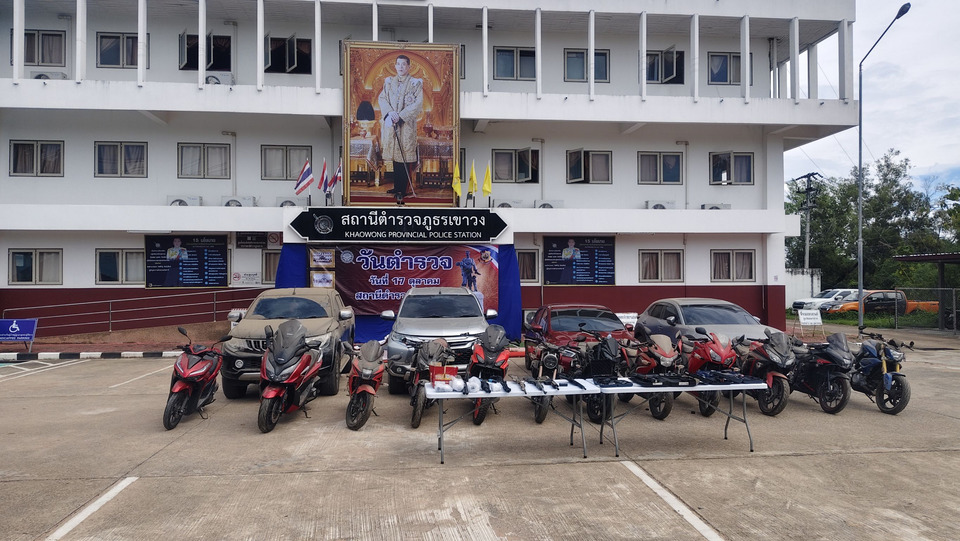 นำโดย พ.ต.ท.พิพัฒน์ พานเพ็ชร์ สว.กก.สืบสวน 3 ร่วมกับ พ.ต.อ.สมชาย ภูกองชนะ ผกก.สภ.เขาวง พร้อมเจ้าหน้าที่ตำรวจสภ.เขาวง และเจ้าหน้าที่ชุดจับกุมแถลงผลการจับกุมตัวตัวนายชลสิทธิ์ (สงวนนามสกุล) อายุ 27 ปี ภูมิลำเนาอยู่ที่หมู่ 9 ต.สมเด็จ อ.สมเด็จ จ.กาฬสินธุ์ ผู้ต้องหาตามหมายจับของ ศาลจังหวัดกาฬสินธุ์ ที่ 387/2568 ลงวันที่ 28 สิงหาคม 2568 พร้อมของกลางเป็นรถยนต์ 4 คัน รถจักรยานยนต์ 12 คัน.มูลค่ารวมประมาณ 6 ล้านบาท