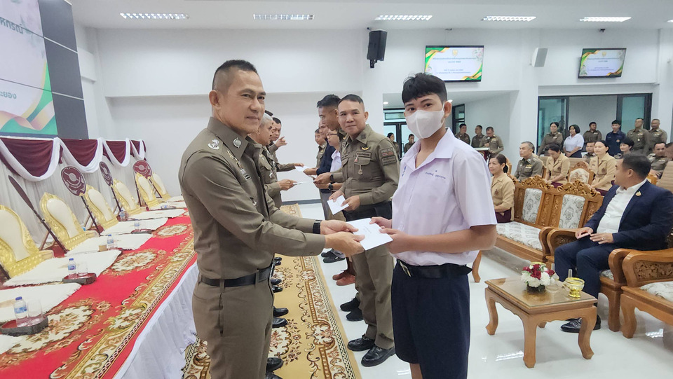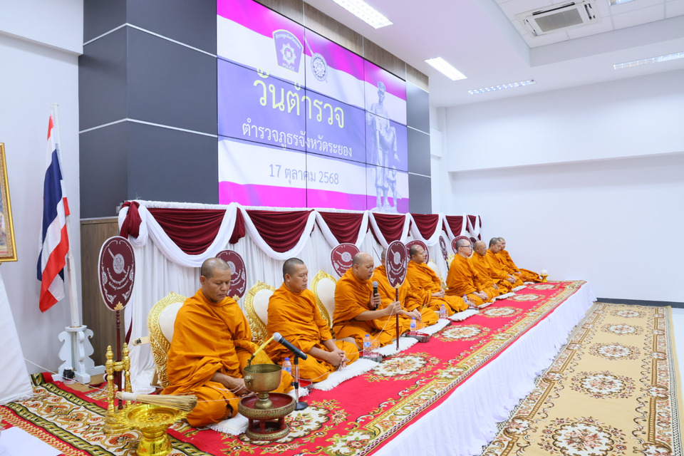 เมื่อเวลา 09.30 น. วันที่ 17 ต.ค.68 ที่ห้องประชุมกองบังคับการตำรวจภูธรจังหวัดระยอง ต.ท่าประดู่ อ.เมือง จ.ระยอง พล.ต.ต.ปราโมทย์ งามประดิษฐ์ ผบก.ภ.จว.ระยอง เป็นประธานในงานวันตำรวจแห่งชาติ ตำรวจภูธรจังหวัดระยอง ประจำปี 2568 ซึ่งในงานได้จัดให้การทำบุญถวายภัตตาหารปิ่นโต และเครื่องไทยธรรมแด่พระสงฆ์ จำนวน 9 รูป เพื่อความเป็นสิริมงคล มอบทุนส่งเสริมการศึกษาแก่บุตรข้าราชการตำรวจภูธรจังหวัดระยองเด็กพิเศษตาม 'โครงการครอบครัวตำรวจ เราไม่ทิ้งกัน' จำนวน 3 คน และทุนการศึกษาบุตรข้าราชการตำรวจภูธรจังหวัดระยองสมาชิกสหกรณ์ออมทรัพย์ตำรวจภูธรจังหวัดระยอง จำนวน 28 คนด้วย