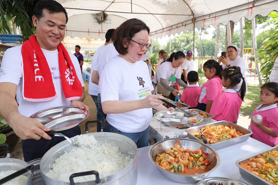 “Taiwan Excellence นำอาสาสมัครกว่า 50 คน ร่วมแรงร่วมใจปรุงอาหารจานร้อน พร้อมเลี้ยงอาหารกลางวันเด็กๆ โรงเรียนวัดเวฬุวัน จังหวัดสุพรรณบุรี โดยจัดเตรียมทั้งเมนูอาหารไทย และเมนูอาหารจานเด็ดของไต้หวัน ‘หลู่โร่วฟ่าน’ หรือ ‘ข้าวหมูตุ๋นสไตล์ไต้หวัน’ ทุกเมนูเป็นเมนูที่อุดมไปด้วยคุณค่าทางโภชนาการ เสริมสร้างการเติบโตของเด็กๆ ไปพร้อมกับเรียนรู้วัฒนธรรมทางอาหารร่วมกันอย่างอบอุ่น นอกจากนี้ Taiwan Excellence ยังได้ร่วมกับอาสาสมัครช่วยเด็ก ๆ ปลูกพืชผักสวนครัว เพื่อสร้างแหล่งอาหารยั่งยืนในโรงเรียน พร้อมเป็นแหล่งเรียนรู้นอกห้องเรียน เสริมทักษะชีวิต และต่อยอดสู่ความยั่งยืนของชุมชน” นางสาวมีอา กล่าว