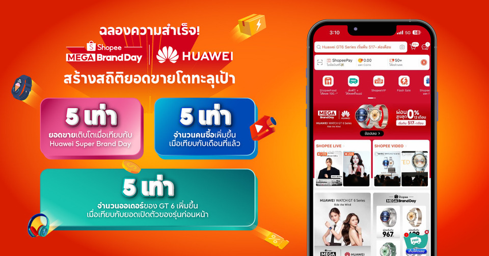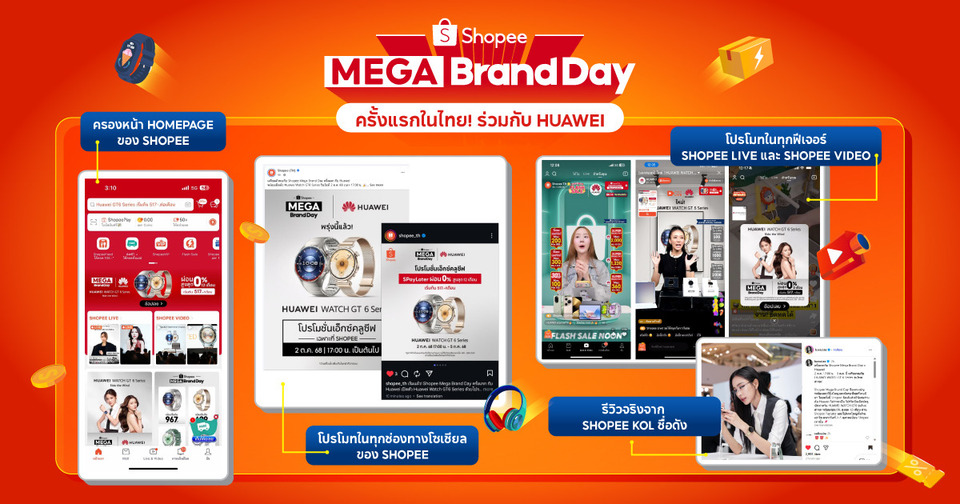 Shopee ผนึกกำลัง HUAWEI เปิดตัว “Mega Brand Day” ครั้งแรกในไทย สร้างกระแสแรง เปิดตัว HUAWEI WATCH GT 6 Series ทุบสถิติยอดขายพุ่งกว่า 5 เท่า