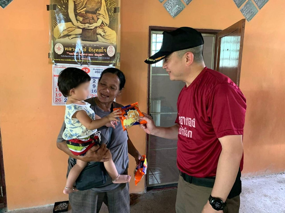 โดยคณะเจ้าหน้าที่ได้พบปะพูดคุย สอบถามความเป็นอยู่ เพื่อสร้างขวัญและกำลังใจแก่ประชาชน พร้อมมอบน้ำดื่มและไข่ไก่ให้กับผู้ได้รับผลกระทบจากน้ำท่วม รวมทั้งผู้ป่วยติดเตียง เพื่อบรรเทาความเดือดร้อนในเบื้องต้น