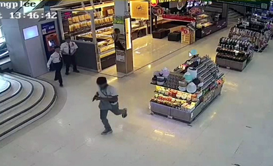 โดยจากการสอบถาม ทราบว่า ผู้ก่อเหตุเป็นชายได้ เข้ามาบริเวณในห้างก่อนที่จะปาระเบิดปิงปองทำให้เกิดเสียงดัง เพื่อเบี่ยงความสนใจ ก่อนวิ่งบุกเดียวพร้อมปืนไปที่ร้านทอง ก่อนกระโดดข้ามเคาเตอร์ไปทุบกระจกตู้ทอง ก่อนกวาดสร้อยคอทองคำขนาด 2 บาท ไป 1 ถาด 12 เส้น ก่อนวิ่งหลบหนีไปขี่มอไซค์ที่จอดไว้หน้าห้างหลบหนี