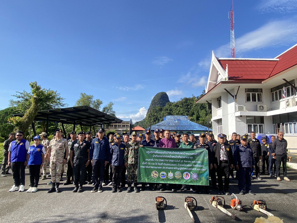 วันที่ 18 ต.ค.68 ภายใต้การอำนวยการของ นายพีรพัฒน์ เงินเจริญ นายอำเภอเมืองพังงา ได้มอบหมายให้ นายพรรษิษฐ์ อุตมะมุณีย์ ปลัดอำเภอหัวหน้ากลุ่มงานบริหารงานปกครอง และ นายสุพศิน ไชยบุญ ปลัดอำเภอเมืองพังงา พร้อมด้วยสมาชิกกองอาสารักษาดินแดน (อส.) ร้อย อส.อ.เมืองพังงา 1 รวมทั้งกำนัน ผู้ใหญ่บ้านตำบลสองแพรก ลงพื้นที่บูรณาการร่วมกับหน่วยงานภาครัฐหลายภาคส่วน เพื่อดำเนินการ รื้อถอนผลอาสินในพื้นที่ป่าสงวนแห่งชาติการปฏิบัติในครั้งนี้มีหน่วยงานร่วมบูรณาการ ได้แก่กองอำนวยการรักษาความมั่นคงภายในจังหวัดพังงา (กอ.รมน.จ.พังงา), กองกำกับการตำรวจตระเวนชายแดนที่ 425 ตะกั่วป่า,ตำรวจ กก.5 บก.ปทส.,ตำรวจ สภ.ทุ่งคาโงก,องค์การบริหารส่วนตำบลนบปริง,หน่วยป้องกันรักษาป่าที่ พง.1 (พังงา), พง.2 (ท้ายเหมือง), พง.3 (ตะกั่วป่า), พง.4 (กะปง), พง.5 (ทับปุด),ชุดปฏิบัติการพิเศษป่าไม้พังงาและเจ้าหน้าที่เขตรักษาพันธุ์สัตว์ป่าน้ำตกสองแพรก