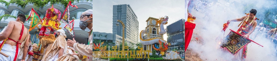เทศกาลกินเจภูเก็ต หรือที่รู้จักกันในชื่อ เทศกาลเทพเจ้าทั้งเก้า มีต้นกำเนิดจากความเชื่อของลัทธิเต๋าในประเทศจีน เพื่อส่งเสริมการชำระล้างร่างกายด้วยการรับประทานอาหารเจ สำหรับเมืองภูเก็ตที่มีรากเหง้าทางวัฒนธรรมจีนอย่างลึกซึ้ง ตามถนนหนทางและศาลเจ้าจึงจะเต็มไปด้งบสีสัน ความคึกคัก กิจกรรมและพิธีกรรมตลอด 10 วัน ไม่ว่าจะเป็นการเดินลุยไฟ ไต่บันไดมีด พลุไฟ รวมเป็นถึงร้านอาหารเจหลากหลายเมนูให้ได้ลิ้มลอง
