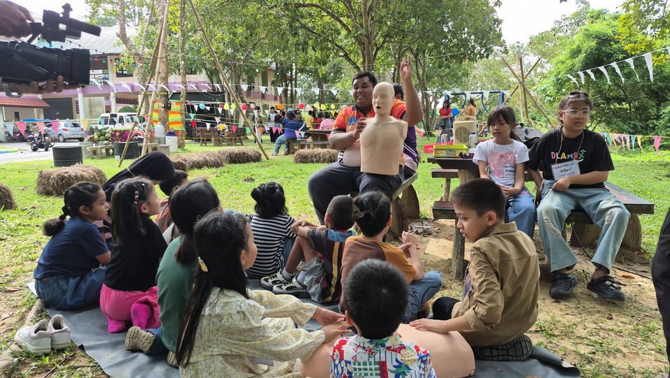 วันที่ 19 ต.ค.68 ที่สวนสาธารณะเขาโต๊ะพญาวัง จ.สตูล เต็มไปด้วยรอยยิ้มของน้องๆ กว่า 45 คน ในกิจกรรม “English Kids Camp : สนุก เรียนรู้ สร้างเสริมทักษะชีวิต” ที่กลุ่มจิตอาสาและผู้ปกครองรวมพลังจัดขึ้น เพื่อเปิดพื้นที่ให้เด็กใช้เวลาว่างช่วงปิดเทอมอย่างสร้างสรรค์ โดยกิจกรรมมีทั้งหมด 4 ฐาน อาทิ English for Kids ฝึกคำศัพท์ผ่านเกมสนุก, ปลอดภัยเมื่อภัยมา สาธิต CPR เบื้องต้น, ชีวิตติดงาน แนะนำอาชีพและเวิร์กช็อปทดลอง, เชฟกระทะเด็ก ฝึกทำไข่เจียวทรงเครื่อง