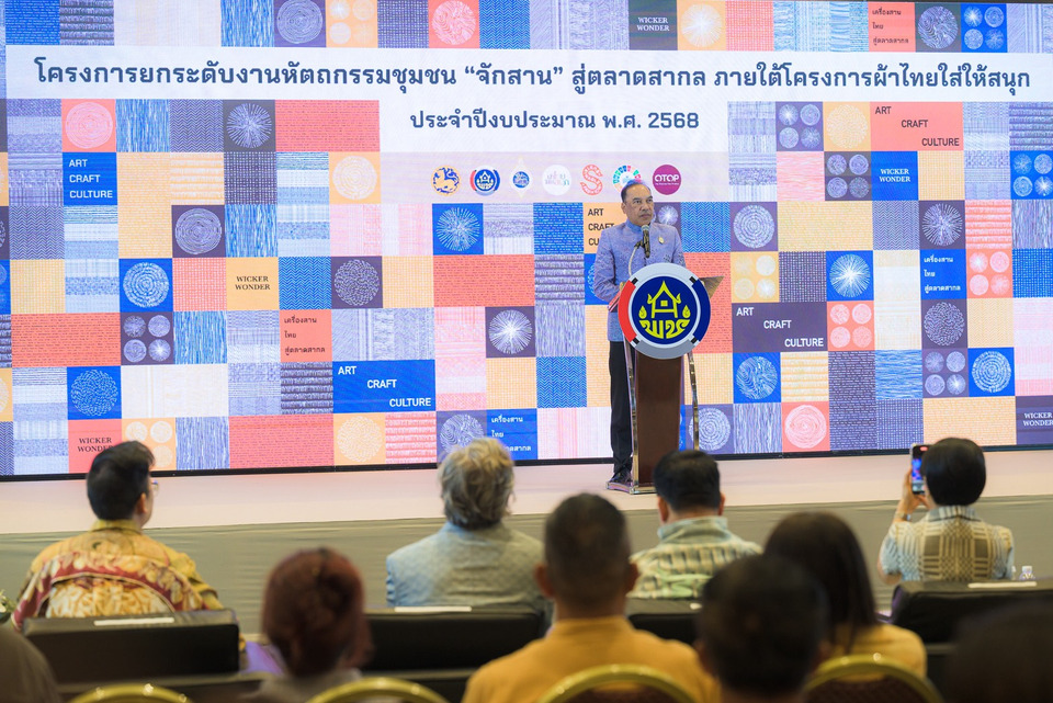 กรมการพัฒนาชุมชน เดินหน้ายกระดับผลิตภัณฑ์ชุมชน "จักสานไทย" สู่สากล เพื่อสร้างรายได้อย่างยั่งยืน วันที่ 18 ตุลาคม 2568 เวลา 09.30 น. ณ ห้องฟีนิกซ์ 1-4 ศูนย์แสดงสินค้าและการประชุม อิ่มแพ็ค เมืองทองธานีนายสุรศักดิ์ อักษรกุล อธิบดีกรมการพัฒนาชุมชน มอบหมายให้นายวรงค์ แสงเมือง รองอธิบดีกรมการพัฒนาชุมชนเป็นประธานเปิดโครงการยกระดับงานหัตถกรรมชุมชน "จักสาน" สู่ตลาดสากล ภายใต้โครงการผ้าไทยใส่ให้สนุกประจำปีงบประมาณ พ.ศ. 2568 กลุ่มเป้าหมายประกอบด้วย ผู้ผลิต ผู้ประกอบการ OTOP ที่มีผลิตภัณฑ์งานจักสาน ระดับ 1-5 ดาว จำนวน 35 กลุ่ม/ราย ดำเนินการระหว่างวันที่ 18 - 19 ตุลาคม 2568