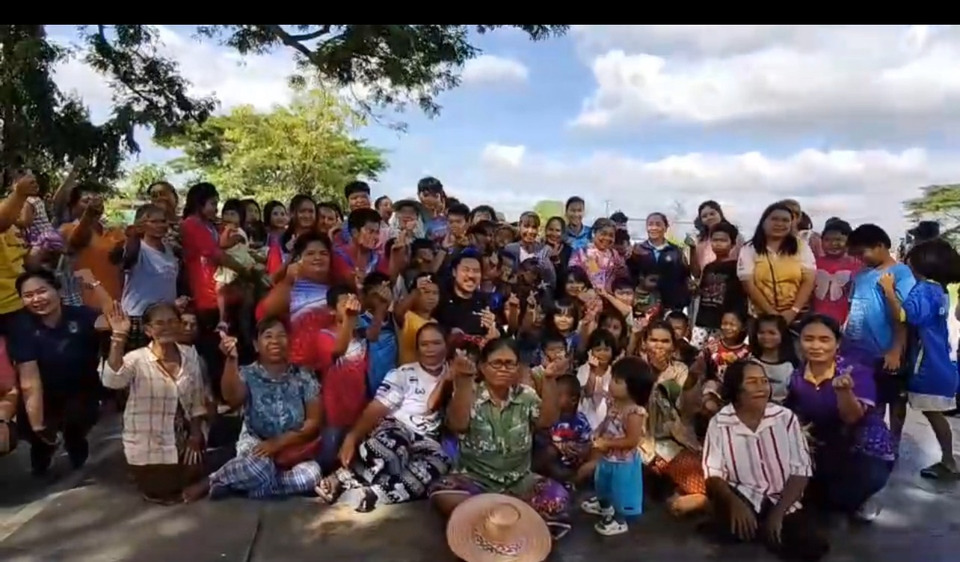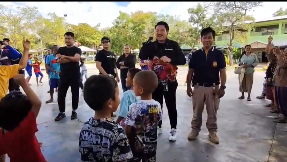 บรรยากาศภายในโรงเรียนเต็มไปด้วยความอบอุ่นและปลื้มใจ เด็กนักเรียนและประชาชนในพื้นที่ต่างมารอต้อนรับ พร้อมร่วมให้กำลังใจ “กัน จอมพลัง” ที่มาช่วยดูแลและผลักดันโครงการเพื่อความปลอดภัยของคนชายแดนอย่างต่อเนื่อง ในโอกาสนี้ ครอบครัวผู้สูญเสียจากเหตุจรวด BM-21 ตกใส่ร้านสะดวกซื้อบริเวณปั๊มน้ำมันบ้านผือ โดยนายคมสันต์ ประชัน ได้เดินทางมาพบ “กัน จอมพลัง” ด้วย เนื่องจากได้สูญเสียภรรยา นางสาวรุ่งรัศ ประชัน และบุตรทั้งสอง คือ น้องผักบุ้ง (น.ส.ทักษพร) อายุ 15 ปี และ น้องฟรีคิก (ด.ช.พงศภัค) อายุ 9 ขวบ