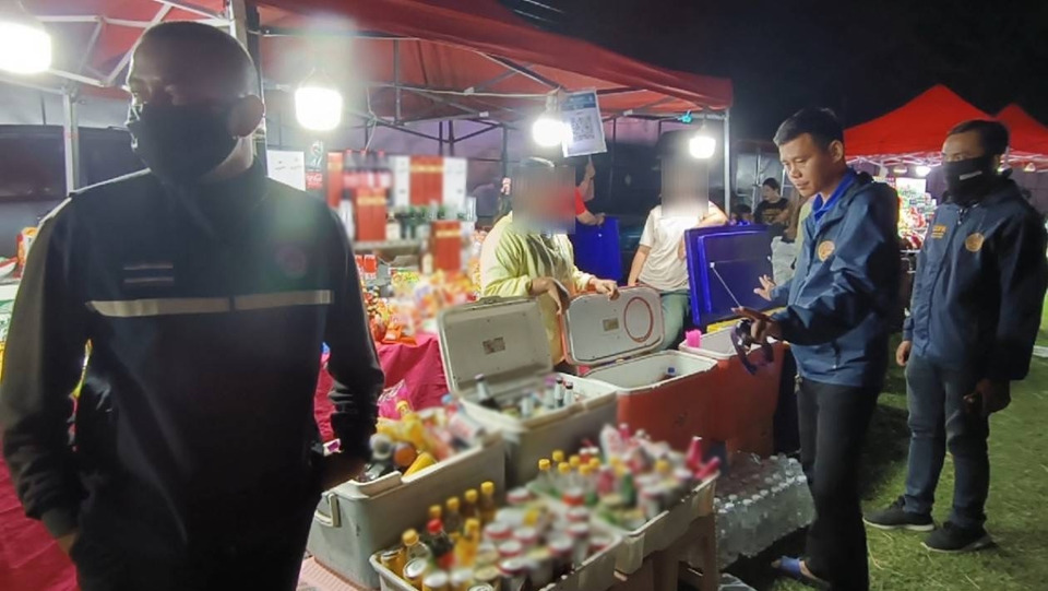 โดยผู้ประกอบการรายหนึ่งอ้างว่า ได้เช่าช่วงต่อจากผู้รับเหมาประมูลงานร้านค้า ที่มีราคาประมูลมาใน 40,000-60,000 บาทต่องาน/ต่อคืน แล้วแต่สถานที่จัดงาน จากนั้นได้นำมาปล่อยให้พ่อค้าแม่ค้าเข้ามาเช่าพื้นที่ขายต่อ โดยอ้างว่าเส้นใหญ่ รู้จักกับเจ้าหน้าที่ทุกฝ่าย เจ้าหน้าที่จึงแสดงตัวเข้าจับกุม ได้ผู้ต้องหา 2 ราย โดยแจ้งข้อกล่าวหา จำหน่ายเครื่องดื่มแอลกอฮอล์โดยไม่ได้รับอนุญาต และจำหน่ายเครื่องดื่มแอลกอฮอล์เกินกว่าเวลาที่กฏหมายกำหนด จากนั้นได้นำตัวผู้ต้องหาพร้อมของกลางส่งดำเนินคดีตามกฎหมายต่อไป
