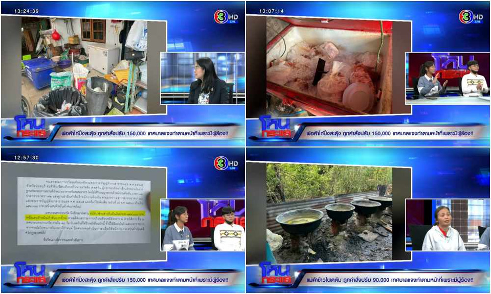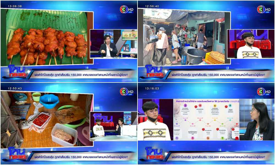 รายการ โหนกระแส วันที่ 22 ต.ค. ดำเนินรายการโดย “หนุ่ม กรรชัย กำเนิดพลอย” ผลิตในนามบริษัท ดีคืนดีวัน จำกัด ออกอากาศทุกวันจันทร์-ศุกร์ เวลา 12.35 น. ทางช่อง 3 กดหมาย เลข 33 สัมภาษณ์ อาร์ม - พุ่ม พ่อค้าแม่ค้าไก่ปิ้งที่เป็นประเด็น มาพร้อม ป้านวลจันทร์-ลุงบานเย็น ขายข้าวโพดต้ม ถูกค่าปรับ 9 หมื่น, ปริญดา เชาว์อรัญ รองปลัดเทศบาล รักษาราชการแทนปลัดเทศบาลปากเกร็ด, ทนายแก้ว ดร.มนต์ชัย จงไกรรัตนกุล ให้ความรู้ข้อกฎหมาย