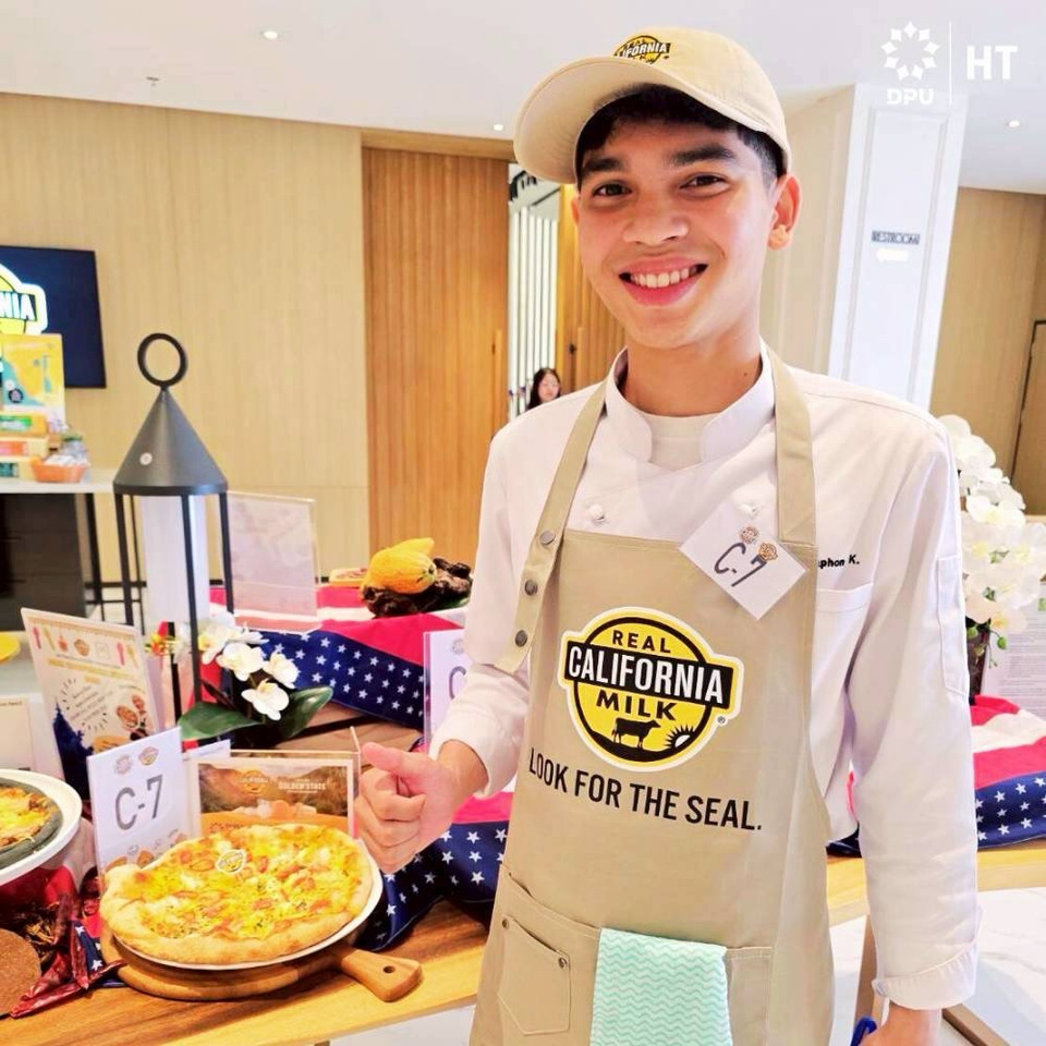 คณะการท่องเที่ยวและการโรงแรม มหาวิทยาลัยธุรกิจบัณฑิตย์ (DPU) ตอกย้ำแนวคิด “ทุกคนมีศักยภาพ และคุณค่าในแบบของตัวเอง” ผ่านการส่งเสริมการเรียนรู้เชิงสร้างสรรค์และการลงมือปฏิบัติจริง โดยเปิดโอกาสให้นักศึกษาได้แสดงศักยภาพและต่อยอดสู่เวทีอาชีพระดับโลก ล่าสุด นายธีรพล กาญจนะ (วา) นักศึกษาชั้นปีที่ 4 หลักสูตรการประกอบอาหารเพื่อสุขภาพ คว้ารางวัล ชนะเลิศอันดับที่ 1 จากเวทีการแข่งขัน Real California Pizza Battle 2025 ซึ่งจัดโดย Real California Milk Thailand พร้อมรับสิทธิ์เป็นตัวแทนประเทศไทยเข้าร่วมการแข่งขันทำพิซซ่าระดับนานาชาติ ณ มลรัฐแคลิฟอร์เนีย ประเทศสหรัฐอเมริกา