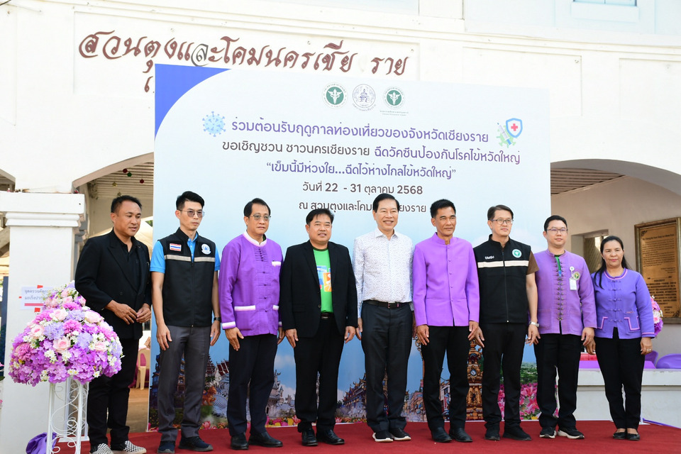 วันที่ 22 ตุลาคม 2568 นายวันชัย จงสุทธานามณี นายกเทศมนตรีนครเชียงราย พร้อมคณะผู้บริหาร สมาชิกสภาเทศบาล ข้าราชการ และเจ้าหน้าที่ ร่วมกับสำนักงานสาธารณสุขจังหวัดเชียงราย โรงพยาบาลเชียงรายประชานุเคราะห์ ศูนย์วิทยาศาสตร์การแพทย์ที่ 1/1 เชียงราย และ สาธารณสุขอำเภอเมืองเชียงราย จัดกิจกรรม “รณรงค์ฉีดวัคซีนป้องกันโรคไข้หวัดใหญ่” เพื่อป้องกันการแพร่ระบาดของโรคในช่วงเปลี่ยนฤดูกาล และสร้างความมั่นใจให้กับนักท่องเที่ยวก่อนเข้าสู่ฤดูกาลท่องเที่ยวปลายปี