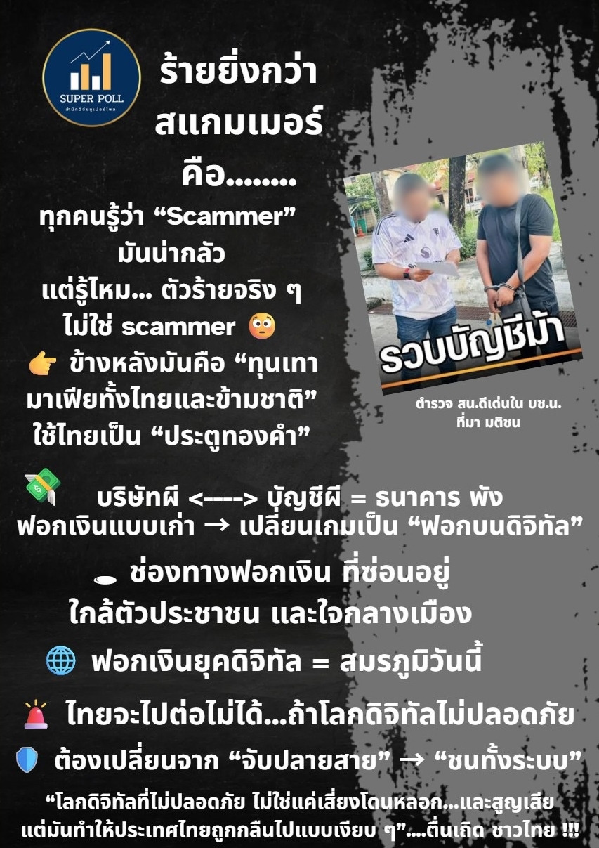 วันที่ 23 ต.ค.68 ผศ.ดร.นพดล กรรณิกา ผู้ก่อตั้งซูเปอร์โพล สถาบันวิจัยความสุขชุมชนและความเป็นผู้นำ ศิษย์เก่า Georgetown University ด้าน Cybersecurity & Policy และศิษย์เก่า University of Michigan-Ann Arbor ด้าน Data Science and Methodology ออกบทความเรื่อง “ร้ายยิ่งกว่า สแกมเมอร์ คือ...” โดยระบุว่า...