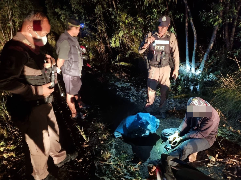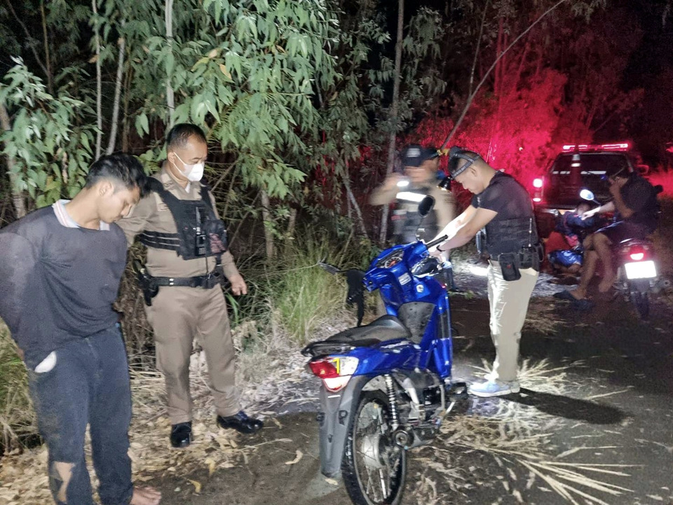 จากนั้นเจ้าหน้าที่ พร้อมชาวบ้านผูัแจ้ง ได้ช่วยกันติดตามตัวผู้ต้องสงสัยอย่างกระชั้นชิด จนไปถึงบริเวณถนนลูกรัง ซึ่งมีน้ำท่วมขัง ในระดับที่สูง จึงทำให้รถจักรยานยนต์ของบุคคลต้องสงสัย เครื่องดับ ไม่สามารถเดินทางต่อไปได้ เจ้าหน้าที่จึงทำการเข้าตรวจสอบ และควบคุมผู้ต้องสงสัยได้ 1 คน ชื่อ นายสุธวัฒน์ อายุ 28 ปี ชาว ต.ธาตุน้อย อ.เขื่องใน จ.อุบลราชธานี อีกคน อาศัยความมืดหลบหนีไปได้ เจ้าหน้าที่ตำรวจจะได้ติดตามตัวมาดำเนินคดีต่อไป