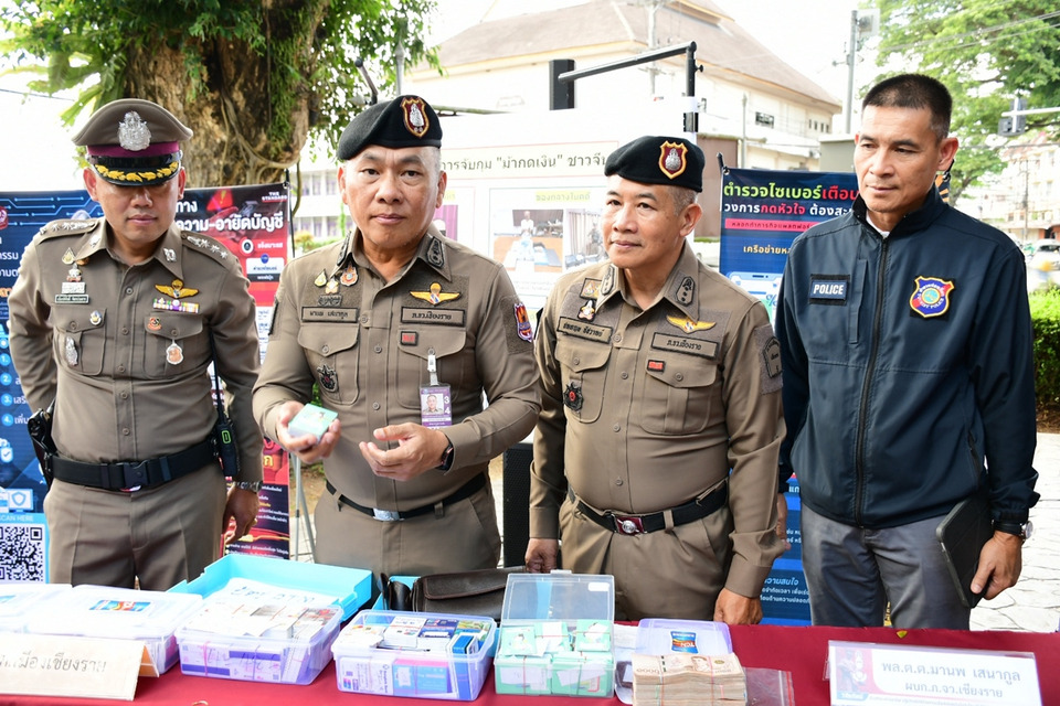 เมื่อเวลา 11.00 น. วันที่ 24 ต.ค.68 ที่ร้านกาแฟแห่งหนึ่งใน อ.เมืองเชียงราย จ.เชียงราย พล.ต.ต.มานพ เสนากูล ผู้บังคับการตำรวจภูธรจังหวัดเชียงราย พ.ต.อ.ชลทฤษ ชัชวาลย์ รองผู้บังคับการตำรวจภูธรจังหวัดเชียงราย พ.ต.อ.เกียรติศักดิ์ จิตรประสาร ผกก.สภ.เมืองเชียงราย พ.ต.อ.อนุพันธ์ กันถารัตน์ ผกก.สภ.เชียงแสน พ.ต.ท.ธนวินท์ พวงมะลิ สารวัตรตำรวจท่องเที่ยวเชียงราย เจ้าหน้าที่ตรวจคนเข้าเมืองเชียงราย พร้อมด้วยเจ้าหน้าที่ ที่เกี่ยวข้อง ร่วมกันแถลงข่าวการจับกุม Mr.HU อายุ 35 ปี ชาวมณฑลหูเป่ย์ สัญชาติจีน ประเทศจีน พร้อมของกลางโทรศัพท์มือถือ ยี่ห้อ ไอโฟน รุ่น 14 สีน้ำเงิน จำนวน 1 เครื่อง โทรศัพท์มือ ยี่ห้อ วีโว่ สีฟ้า จำนวน 1 เครื่อง โน๊ตบุ๊คยี่ห้อLenovo รหัสเครื่อง DESKTOP-20B1900 จำนวน 1 เครื่อง บัตร ATM จำนวน 2,057 ใบ เงินสดทั้งหมดจำนวน 537,900 บาท และของกลางรายการอื่นๆ และอีกราย สภ.เชียงแสน จับกุม นายรุ่งโรจน์ (สงวนนามสกุล) อายุ 35 ปี ชาว อ.แม่ฟ้าหลวง จ.เชียงราย พร้อมของกลาง สมุดบัญชีธนาคาร จำนวน 34 เล่ม บัตร ATM จำนวน 38 ใบ ซิมการ์ด จำนวน 39 ซิม
