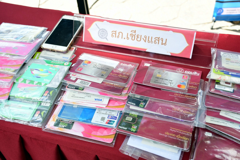 อีกราย เจ้าหน้าที่ตำรวจ สภ.เชียงแสน ได้รับแจ้งจากสายลับว่าจะมีการลักลอบส่งสมุดบัญชี บัตรอิเล็กทรอนิกส์ และซิมการ์ด ผ่านบริษัทขนส่งเอกชน เพื่อส่งต่อไปประเทศลาว โดยฝากไว้ที่จุดฝากรถหน้าด่านสามเหลี่ยมทองคำ อ.เชียงแสน จ.เชียงราย ตำรวจจึงวาง กำลังซุ่มตรวจ จนพบรถขนส่งบริษัทเอกชน นำพัสดุมาส่ง มีชายชื่อ นายรุ่งโรจน์ รับพัสดุไป เจ้าหน้าที่จึงแสดงตัวตรวจ ค้น พบของกลางเป็นสมุดบัญชี บัตรอิเล็กทรอนิกส์ และซิมการ์ดจำนวนมาก ต่อมาเจ้าหน้าที่ขยายผลตรวจยึดพัสดุเพิ่มเติมจากบริษัทเอกชนในพื้นที่ พบของกลางลักษณะ เดียวกันหลายรายการ เครือข่ายนี้เกี่ยวข้องกับการลักลอบส่งบัญชีและบัตรไปให้กลุ่ม “จีนเทา” ที่ลาว เพื่อใช้ในแก๊งสแกม เมอร์สร้างความเสียหายแก่ประชาชน โดยตำรวจภูธรจังหวัดเชียงราย จะเร่งขยายผลและยึดทรัพย์เครือข่ายตามนโยบาย รัฐบาลและผู้บัญชาการตำรวจแห่งชาติ