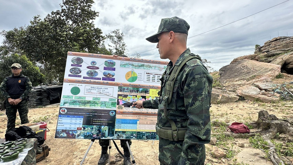และยังมีการวางทุ่นระเบิดเพิ่มเติม ซึ่งมีกำลังพลของไทยเหยียบไป 6 ครั้ง และในห้วงการปะทะที่ผ่านมา ในการยิงจรวด BM-21 ลงมาตกบ้านเรือนประชาชนในพื้นที 4 จังหวัด บุรีรัมย์ 126 สุรินทร์ 446 ศรีสะเกษ 302 อุบลฯ 86 จุด ส่งมอบพื้นที่ให้ ตร. EOD จว.960 จุด