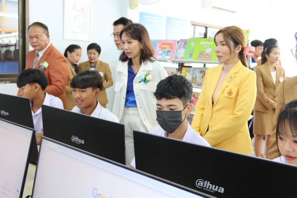 พิธีมอบห้องสมุดได้จัดขึ้นอย่างอบอุ่น โดยมีคุณเฉลิม ประดิษฐอาชีพ กรรมการบริษัท และคุณสุชาวดี แสงอนงค์ กรรมการผู้จัดการใหญ่และกรรมการ บริษัท กรุงไทยพานิชประกันภัย จำกัด (มหาชน) พร้อมคณะผู้บริหารและพนักงานจิตอาสาเข้าร่วม โดยมีคณะกรรมการบริษัทฯ และผู้บริหารจากธนาคารกรุงไทย จำกัด (มหาชน) เข้าร่วมแสดงความยินดี