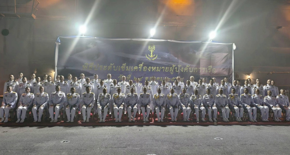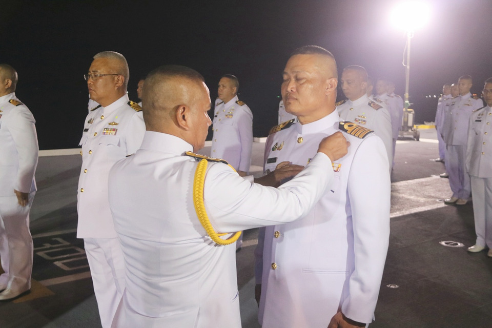 เมื่อวันที่ 24 ตุลาคม 2568 ที่ดาดฟ้าเรือรือหลวงจักรีนฤเบศร ท่าเรือจุกเสม็ด การท่าเรือสัตหีบ ฐานทัพเรือสัตหีบ อำเภอสัตหีบ จังหวัดชลบุรี พลเรือเอก ไพโรจน์ เฟื่องจันทร์ ผู้บัญชาการทหารเรือ เป็นประธานในพิธีประดับเข็มเครื่องหมายผู้บังคับการเรือ จำนวน 54 นาย