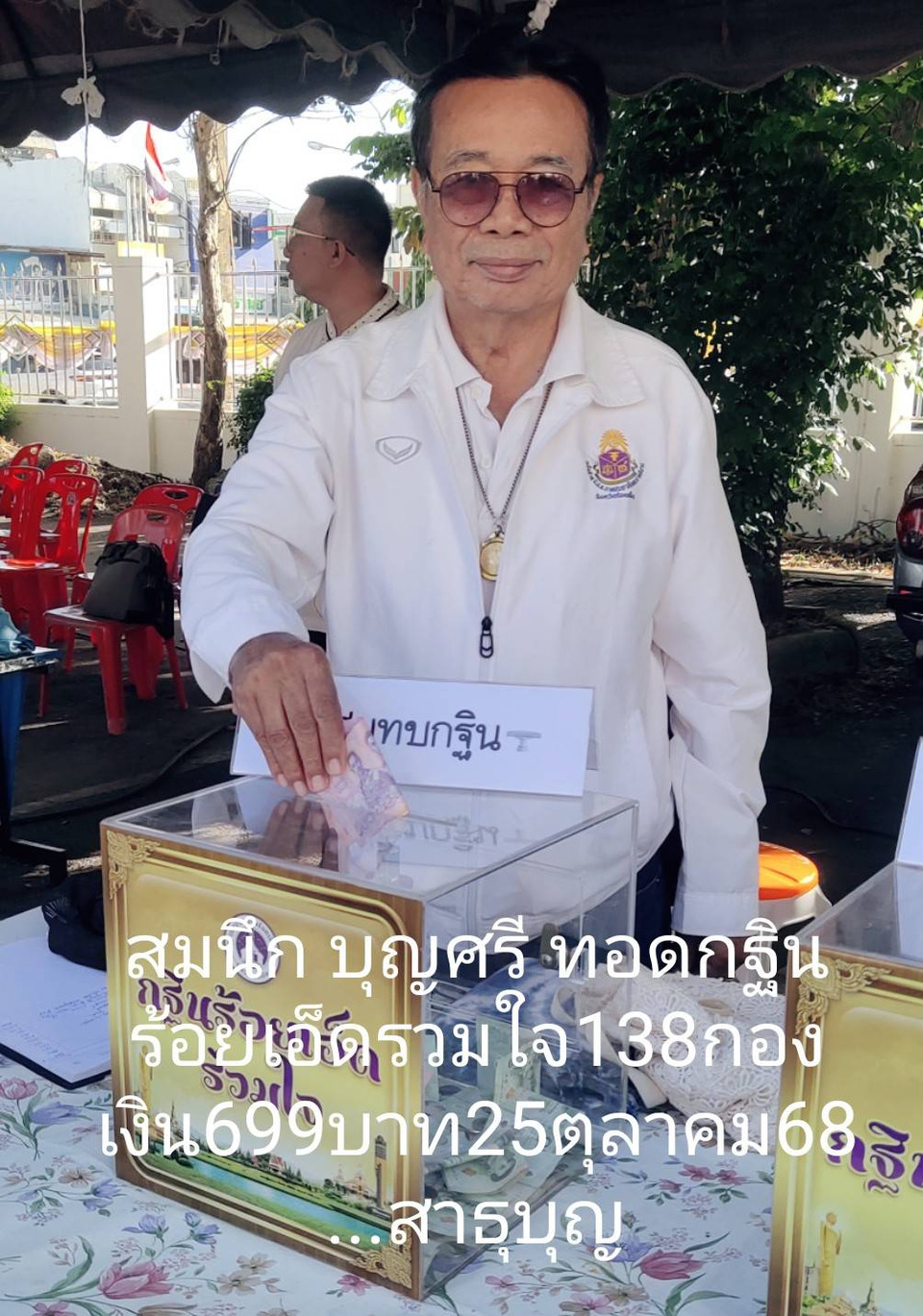 งานกฐินร้อยเอ็ดร่วมใจ ปีนี้ นายสมนึกบุญศรี ประธานชมรมสื่อออนไลน์ IT ได้ถวายปัจจัยทอดกฐิน138กองเงิน699บาทเพื่อสืบสานวัฒนธรรมประเพณีอันดีงามทอดกฐินวัดที่ไม่มีการจองกฐิน