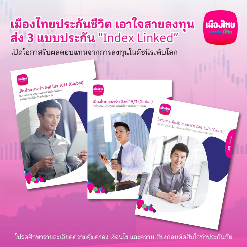 ทั้งนี้นายสาระ ล่ำซำ ประธานเจ้าหน้าที่บริหาร บริษัท เมืองไทยประกันชีวิต จำกัด (มหาชน) เปิดเผยว่า เมืองไทยประกันชีวิตเดินหน้าตอบโจทย์ โดยล่าสุดส่ง 3 แบบประกัน ในกลุ่ม Index Linked เอาใจนักลงทุนสายเพลย์เซฟ ได้เลือกในแบบที่เป็นตัวเอง ประกอบด้วย เมืองไทย สมาร์ท ลิงค์ โปร 10/1 (Global) เมืองไทย สมาร์ท ลิงค์ 15/3 (Global) และ เมืองไทย สมาร์ท ลิงค์ 15/6 (Global) ประกันชีวิตแบบออมทรัพย์ทางเลือกใหม่ที่ไม่ได้ล็อคอัตราผลตอบแทนเหมือนประกันชีวิต รูปแบบเดิม ๆ แต่เปิดโอกาสรับผลตอบแทนส่วนเพิ่ม (Upside gain) ผ่านดัชนีระดับโลก