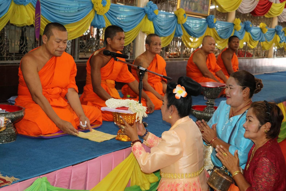 ก่อนเริ่มพิธีเจริญพระพุทธมนต์ฉลองผ้ากฐิน พุทธศาสนิกชนที่มาร่วมงานได้ร่วมกันยืนสงบนิ่ง ถวายความอาลัยแด่สมเด็จพระนางเจ้าสิริกิติ์ พระบรมราชินีนาถ พระบรมราชชนนีพันปีหลวง พร้อมตั้งจิตอุทิศบุญกุศลที่ได้กระทำในวันนี้ถวายเป็นพระราชกุศล
