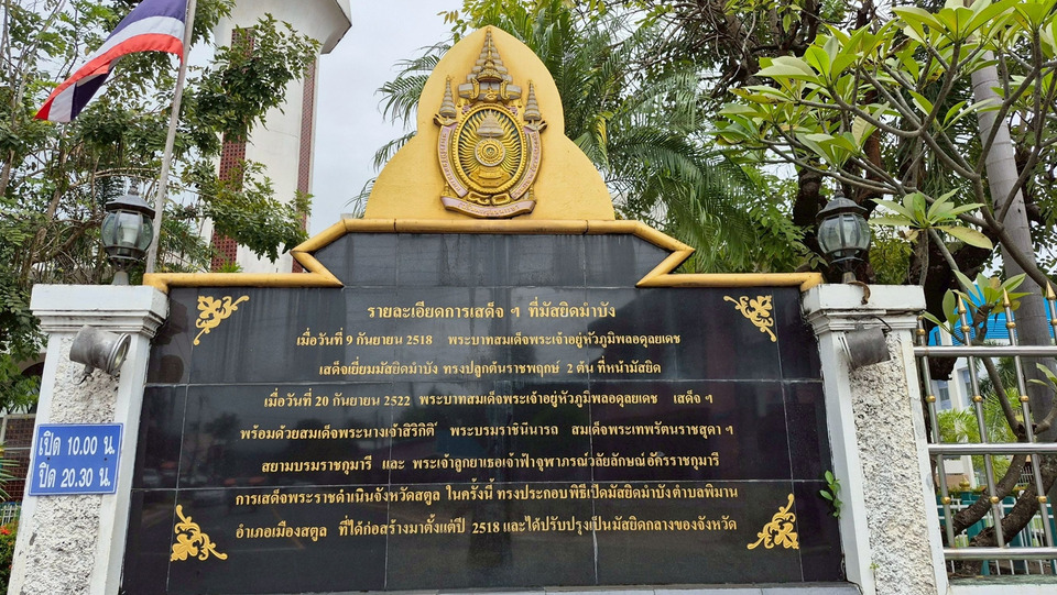 มัสยิดกลางจังหวัดสตูล รำลึกในพระมหากรุณาธิคุณ สมเด็จพระพันปีหลวง และในหลวงรัชกาลที่ 9 ผู้ทรงปลูกต้นราชพฤกษ์เมื่อปี 2518 ต้นไม้ยังคงเติบโตงดงามเป็นสัญลักษณ์แห่งความทรงจำของชาวสตูล