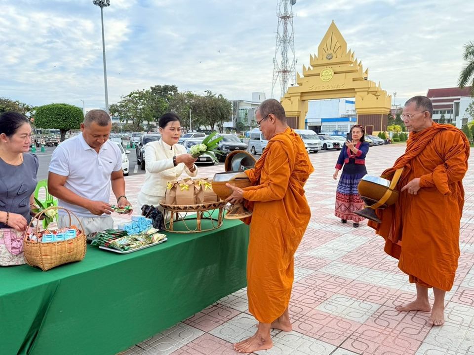 รองผู้ว่าฯ ร้อยเอ็ด นำข้าราชการและประชาชนร่วมทำบุญตักบาตร ณ สวนสมเด็จพระศรีนครินทร์และบึงพระลานชัย เพื่อสืบสานประเพณี เสริมคุณธรรม และเริ่มต้นการทำงานราชการด้วยความเป็นสิริมงคล