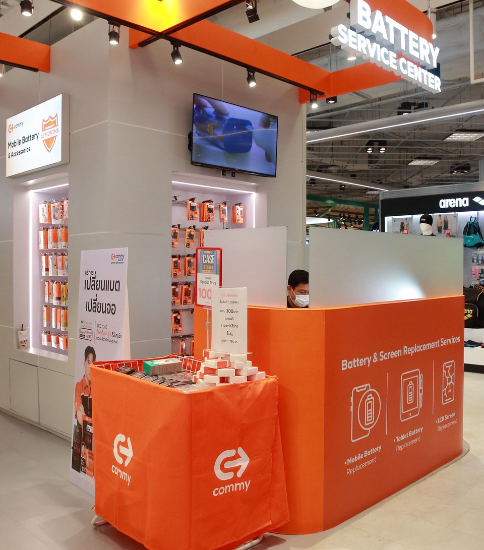 ส่วนรูปแบบการให้บริการ ลูกค้าสามารถเข้ามารับบริการได้ที่ Commy Care - Battery Service Center สำหรับการเปลี่ยนแบตเตอรี่ และจอสมาร์ทโฟน สามารถรับบริการเปลี่ยนทันที ใช้เวลาเพียง 30 นาที หรือสั่งซื้อผ่าน ร้านค้าออนไลน์อย่างเป็นทางการบนแพลตฟอร์ม Shopee, Lazada, และ TikTok และเข้ารับบริการติดตั้งได้ที่ร้าน โดยไม่มีค่าใช้จ่ายเพิ่มเติม ส่วนอะไหล่อิเล็กทรอนิกส์ที่เสียทางคอมมี่จะนำไปทำลายอย่างปลอดภัย เพื่อลดขยะอิเล็กทรอนิกส์ (E-waste) และช่วยดูแลสิ่งแวดล้อมอย่างยั่งยืน