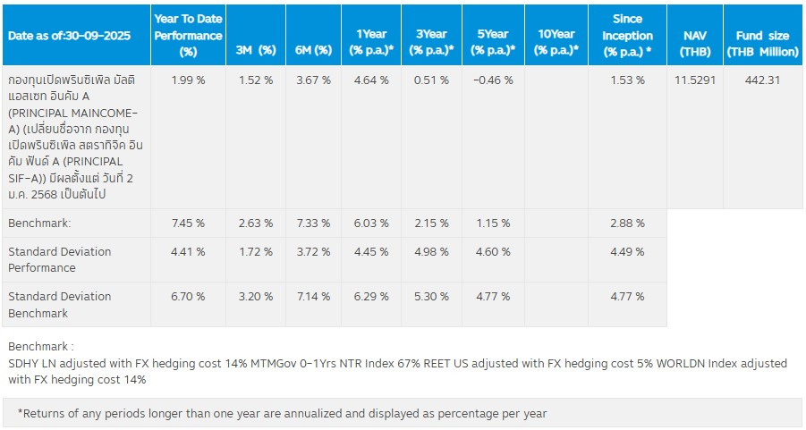 ผลการดำเนินงานกองทุนเปิด PRINCIPAL MAINCOME-A