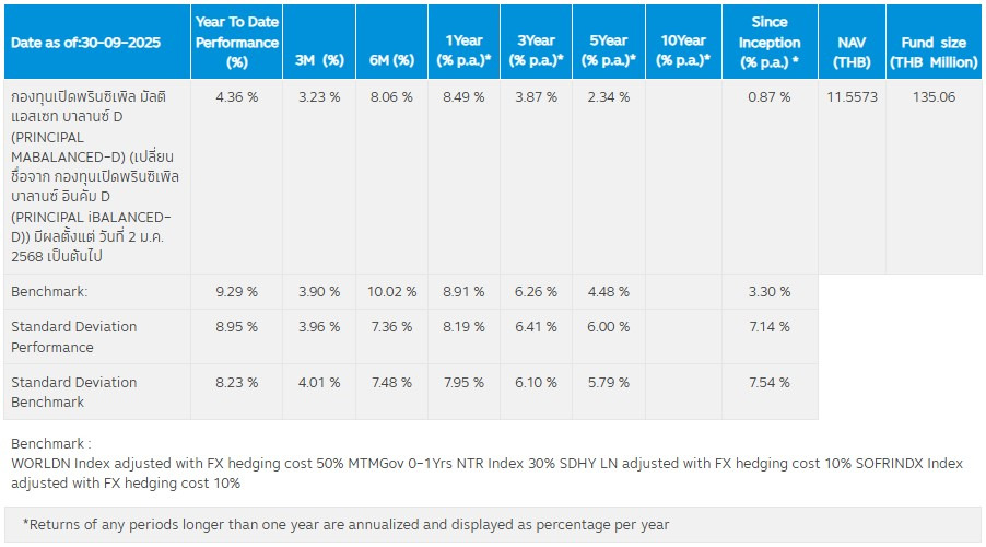 ผลการดำเนินงานกองทุนเปิด PRINCIPAL MABALANCED-D