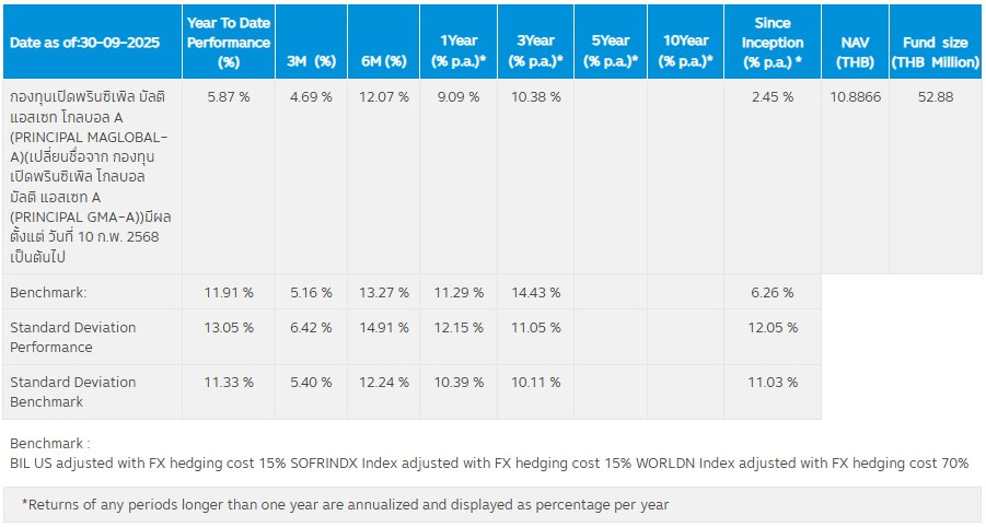 ผลการดำเนินงานกองทุนเปิด PRINCIPAL MAGLOBAL-A