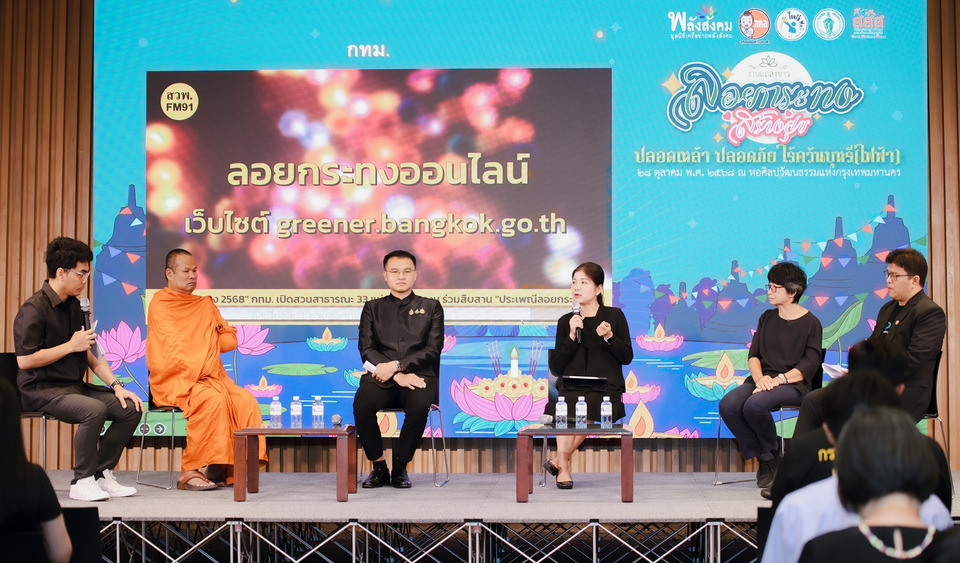พญ.ดวงพร ปิณจีเสคิกุล ผู้อำนวยการสำนักอนามัย กทม. กล่าวว่า ปีนี้ กทม. เปิด 33 สวนสาธารณะถึงเที่ยงคืน ให้ประชาชนร่วมสืบสานประเพณีลอยกระทง ชวนลอยกระทงรักษ์โลก ร่วมดูแลสิ่งแวดล้อม และเน้นเรื่องความปลอดภัยในพื้นที่จัดงาน โดยขอความร่วมมือและเชิญชวนประชาชนร่วมลอยกระทง 1 ครอบครัว 1 กระทง มาด้วยกันลอยด้วยกัน และเพื่อความปลอดภัย ห้ามจุด ปล่อยและจำหน่ายโคมลอย บั้งไฟ โคมไฟ โคมควัน ประทัด พลุ พร้อมเชิญชวนใช้กระทงจากวัสดุธรรมชาติ งดใช้ขนมปัง อาหารปลาหรืออาหารสัตว์ในการทำกระทงเพื่อร่วมอนุรักษ์สิ่งแวดล้อม ที่ผ่านมา กทม. ได้ร่วมสนับสนุนนโยบายในการควบคุมปัจจัยเสี่ยงในพื้นที่สาธารณะ ร่วมกับ สสส. มูลนิธิเครือข่ายพลังสังคม และเครือข่ายงดเหล้ามาโดยตลอด โดยส่งเสริมให้พื้นที่สาธารณะ สวนสาธารณะทุกแห่งเป็นพื้นที่ที่ปลอดภัย “ปลอดแอลกอฮอล์ บุหรี่และบุหรี่ไฟฟ้า” มีการรณรงค์ สร้างการรับรู้ให้ผู้ประกอบการ ร้านค้า ผู้จัดงาน ให้ความร่วมมือเรื่องการดูแลความปลอดภัยของประชาชน และปฏิบัติตามกฎหมายควบคุมเครื่องดื่มแอลกอฮอล์และควบคุมผลิตภัณฑ์ยาสูบ งดจำหน่ายเครื่องดื่มที่มีแอลกอฮอล์ และห้ามสูบบุหรี่ บุหรี่ไฟฟ้าภายในพื้นที่จัดงาน ซึ่งเป็นการส่งเสริมให้เกิดค่านิยมที่ดี ปรับเปลี่ยนพฤติกรรมด้านสุขภาพ และส่งเสริมความปลอดภัย ในพื้นที่สาธารณะของประชาชน รวมถึงสืบทอดคุณค่าของประเพณีลอยกระทงให้ดีงามต่อไป