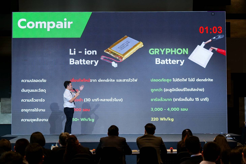 รางวัลชนะเลิศในปีนี้ตกเป็นของผลงาน“Graphene Battery from Leonardite Waste” จากทีมมหาวิทยาลัยเทคโนโลยีพระจอมเกล้าธนบุรี (มจธ.) กรุงเทพมหานคร ด้วยแนวคิดการนำของเสียจากเหมืองถ่านหิน (Leonardite) มาพัฒนาเป็นวัสดุกราฟีนสำหรับใช้ในแบตเตอรี่ ซึ่งช่วยเพิ่มความปลอดภัย ประสิทธิภาพการเก็บพลังงาน และลดผลกระทบต่อสิ่งแวดล้อม ถือเป็นนวัตกรรมพลังงานสีเขียวที่สร้างมูลค่าเพิ่มให้ของเสีย พร้อมแนวทางต่อยอดสู่การใช้งานจริงในอนาคต