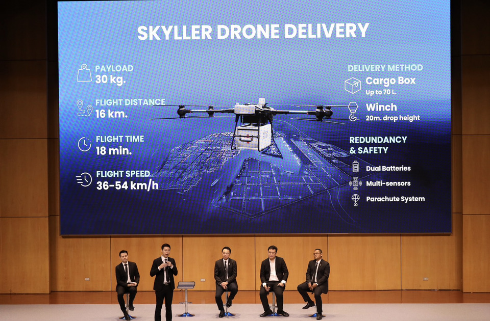 - บริษัท สไกลเลอร์ โซลูชั่นส์ จำกัด : สาธิตการบินโดรน ส่งอุปกรณ์ เครื่องกระตุกหัวใจไฟฟ้าอัตโนมัติ (Automated External Defibrillator, AED) จากไอคอนสยามข้ามแม่น้ำเจ้าพระยาไปยังริเวอร์ ซิตี้ แบงค็อก กรุงเทพมหานคร