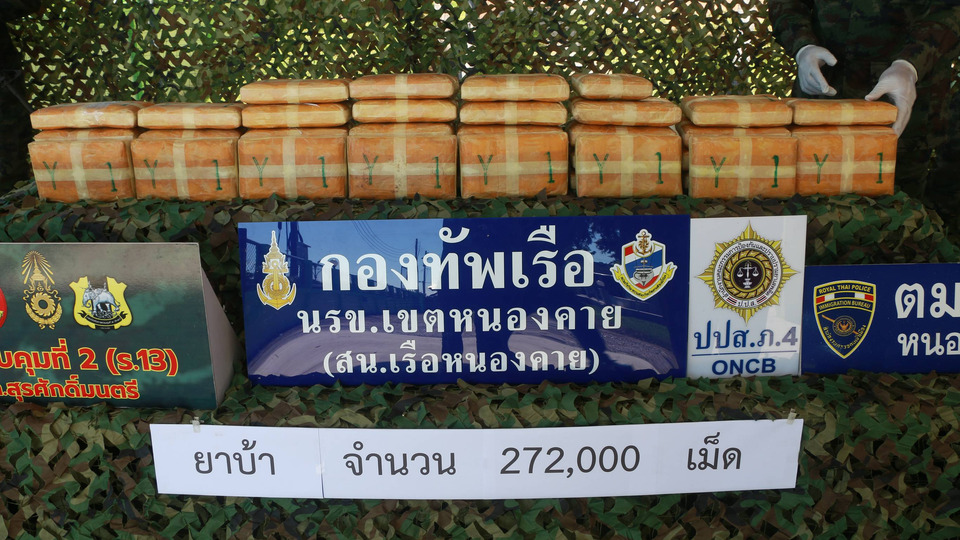 กระทั่งเวลาประมาณ 02.00 น.วันที่ 29 ต.ค.68 น.ท.อริยะ ทองมั่น หน.สน.เรือหนองคาย พร้อม จนท.สน.เรือหนองคาย ได้ยินเสียงเรือกีบเพลายาวแล่นมาจากฝั่ง สปป.ลาว จึงใช้กล้องส่องเวลากลางคืนตรวจสอบพบเรือกีบเพลายาว 1 ลำ ดับเครื่องยนต์ลอยลำมุ่งหน้ามายังฝั่งประเทศไทย และเข้าจอดบริเวณริมฝั่งแม่น้ำโขง บ.จอมแจ้ง แล้วนำกระสอบขึ้นมาวางไว้บริเวณริมฝั่งแม่น้ำโขง จากนั้นได้ติดเครื่องยนต์แล่นกลับ สปป.ลาว เจ้าหน้าที่เฝ้าดูจนกระทั่งเวลา 05.00 น.ไม่พบความเคลื่อนไหวใดๆ จึงเข้าตรวจสอบพบกระสอบสีขาว 1 กระสอบ จึงเปิดตรวจสอบพบยาบ้า 46 มัด จนท.ได้นำของกลางมาตรวจนับอย่างละเลียดที่ สนเรือหนองคาย รวมยาบ้าที่ตรวจยึดได้ครั้งนี้ ประมาณ 272,000 เม็ด ได้ทำบันทึกการตรวจยึด ก่อนนำของกลางส่ง สภ.บ้านเดื่อ อเมืองหนองคาย ดำเนินการตามกฎหมายต่อไป