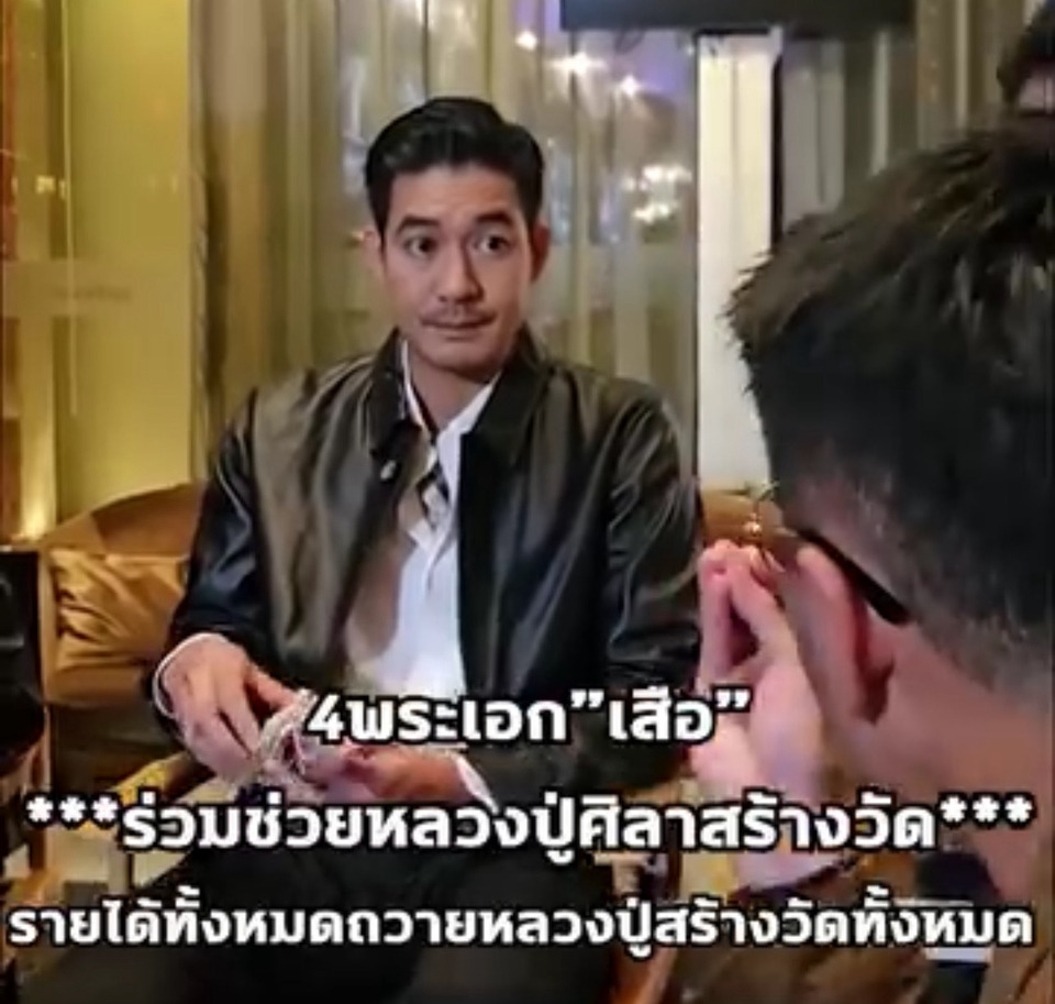 โปรยุง :เสือรุ่นแรกของพระมหาหลวงปู่ศิลาที่ผมศรัทธาขอมอบให้ พี่เวียร์ คุณเป้ คุณมาริโอ้ คุณโตโน่ อันนี้ผมขอจากคุณบุ้ง ใบหยก มาเพื่อมอบให้ 4 เสือ เพื่อเอาฤกษ์เอาชัยคนละองค์ และองค์นี้ผมจะเอาไปประมูลแล้วก็เอาเงินทั้งหมดจากการประมูล ถือว่าหนังเรื่อง เสือ ทำบุญกับหลวงปู่พระมหาศิลาร่วมกันเอาเงินทั้งหมดที่ได้จากการประมูลไปสร้างวัดทั้งหมดเลย โดยเพจของผมประมูลเองแล้วโอนเข้าที่วัดโดยตรงเลย อามือพรมนมขึ้นมาทุกคนจะนำเงินไปสร้างวัดเพื่อดํารงพุทธศาสนาให้อยู่ต่อไปร้อยปีพันปีครับ ขอให้หนังเรื่อง เสือ ทำรายได้ทะลุอย่างที่พี่โขมตั้งใจครับ เฮง เฮง เฮง ครับ