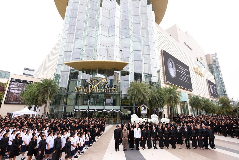 ตามที่สมเด็จพระนางเจ้าสิริกิติ์ พระบรมราชินีนาถ พระบรมราชชนนีพันปีหลวง เสด็จสวรรคตเมื่อวันที่ 24 ตุลาคม 2568 คณะกรรมการ ผู้บริหาร และพนักงาน กลุ่มบริษัทสยามพิวรรธน์ และบริษัท สยามพารากอน ดีเวลลอปเม้นท์ จำกัด พร้อมด้วยพันธมิตรภาครัฐและเอกชน และประชาชน ร่วมน้อมเกล้าน้อมกระหม่อม ถวายความอาลัยด้วยความจงรักและภักดีอย่างสุดจะพรรณา และรู้สึกสำนึกในพระมหากรุณาธิคุณอันล้นพ้นอย่างหาที่สุดมิได้ที่พระองค์ทรงปฏิบัติพระราชกรณียกิจด้วยวิริยอุตสาหะในทุก ๆ ด้าน เคียงข้างพระบาทสมเด็จพระบรมชนกาธิเบศร มหาภูมิพลอดุลยเดชมหาราช บรมนาถบพิตร พระมหากษัตราธิราชเจ้า ผู้ทรงพระคุณอันประเสริฐมาตลอดรัชสมัย พระองค์ทรงเป็นมิ่งขวัญและศูนย์รวมใจของไทยทั้งชาติ ตลอดระยะเวลาที่ทรงปฏิบัติพระราชกรณียกิจ ทรงเสียสละและอุทิศพระชนม์ชีพเพื่อพระราชภารกิจต่าง ๆ อันนำมาสู่ความเจริญรุ่งเรืองมั่นคงของประเทศชาติ และความผาสุกของประชาชนชาวไทย