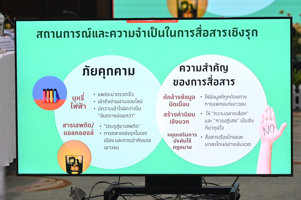 ด้านการประชาสัมพันธ์เชิงรุกสำนักงานประชาสัมพันธ์ได้นำเสนอประเด็นสื่อสารหลัก "Happy Life - ชีวิตดี เริ่มที่ตัวเรา" เพื่อสร้างความตระหนักรู้ถึงโทษของสิ่งเสพติด รวมถึงแอลกอฮอล์/บุหรี่/บุหรี่ไฟฟ้า โดยรองปลัดฯ เน้นย้ำให้ทุกหน่วยงานและสำนักงานเขต ช่วยกันผลิตและเผยแพร่สื่อประชาสัมพันธ์ รณรงค์เรื่องนี้ออกไปให้ได้มากที่สุด