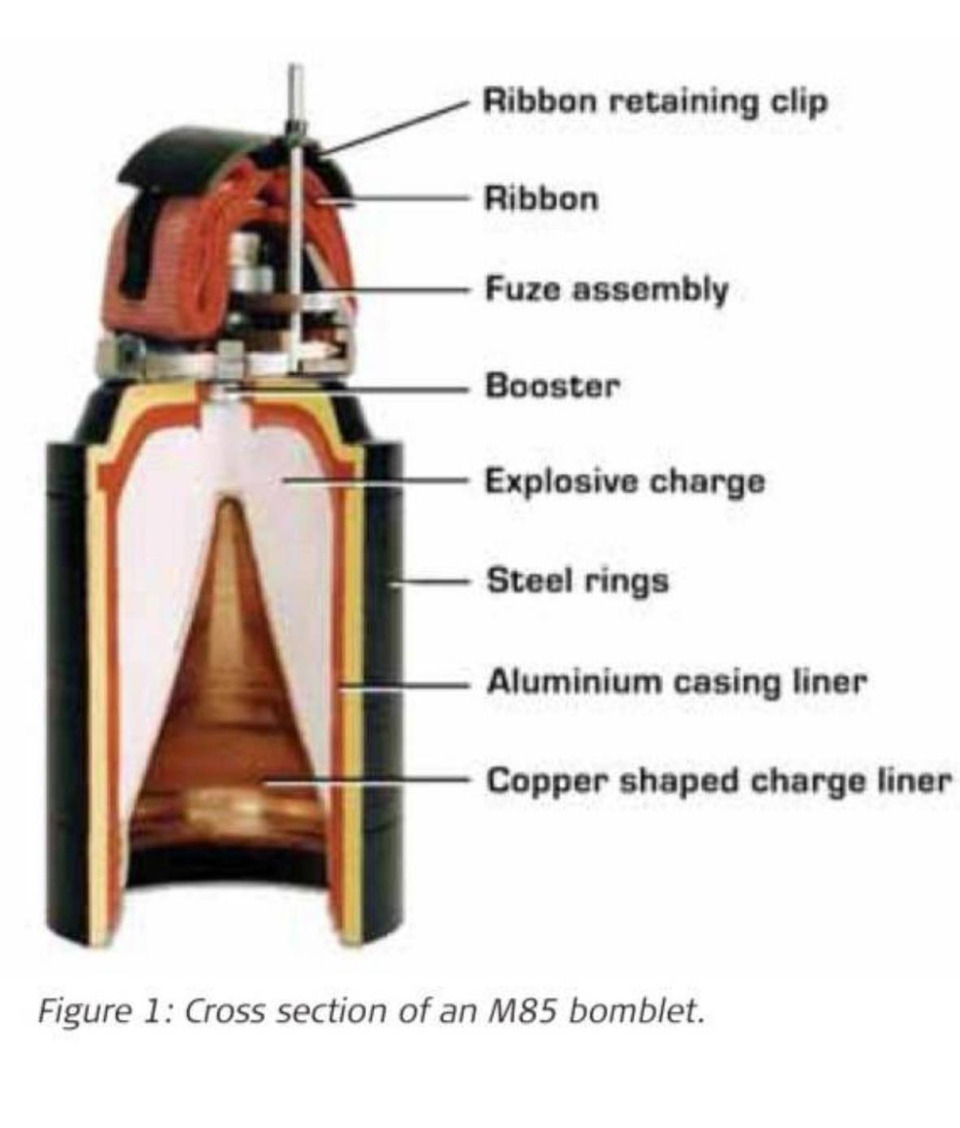 2. โดยการทำงานของกระสุนชนิดนี้ เมื่อยิงถึงเป้าหมายที่กำหนด จะระเบิดและปล่อยลูกระเบิดย่อยแบบ M85 ออกมา ซึ่งลูกระเบิดย่อยจะทำงานและระเบิดตัวเองโดยอัตโนมัติ ไม่มีการตกค้างในพื้นที่ และไม่มีส่วนประกอบของลูกปราย (ลูกเหล็กทรงกลม) ภายในระเบิด