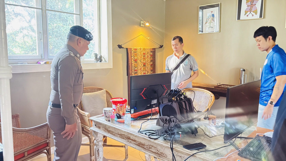 ระหว่างการสืบสวน เจ้าหน้าที่พบว่าบ้านเช่าหลังดังกล่าวใช้ไฟฟ้ามากผิดปกติ จึงได้อำพรางตัวเข้าตรวจสอบ เมื่อพบชาวจีนคนหนึ่งออกจากบ้านและตกใจ รีบวิ่งกลับเข้ามา เจ้าหน้าที่จึงติดตามเข้าไปยังห้องโถงของบ้าน พบอีก 3 คนกำลังนั่งหน้าคอมพิวเตอร์ พร้อมอุปกรณ์ต่อพ่วงสายแลนด์จำนวนมาก ทั้ง 4 คนยกมือขึ้นแสดงท่าทียอมจำนน แม้ไม่สามารถสื่อสารภาษาไทยได้ แต่เจ้าหน้าที่สามารถตรวจสอบและยึดอุปกรณ์ทั้งหมดเพื่อตรวจสอบและสอบสวนต่อไป