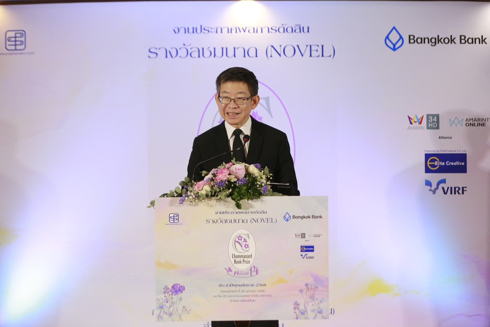 ดร.กอบศักดิ์ ภูตระกูล กรรมการรองผู้จัดการใหญ่ ธนาคารกรุงเทพ จำกัด (มหาชน) กล่าวว่า ธนาคารกรุงเทพ มีความยินดีเป็นอย่างยิ่งที่ได้ต้อนรับทุกท่านเข้าสู่การประกาศผลการตัดสิน "รางวัลชมนาด" ในปีนี้เป็นการจัดงานอย่างต่อเนื่องมาเป็นปีที่ 14 แล้ว รางวัลชมนาด (Chommanard Book Prize) เป็นอีกหนึ่งกิจกรรมสำคัญที่สะท้อนถึงความมุ่งมั่นของธนาคารกรุงเทพ ในการสนับสนุนการพัฒนาทางวัฒนธรรมและศิลปะ โดยเฉพาะอย่างยิ่งในด้านวรรณกรรม “รางวัลชมนาด” ถือเป็นเวทีอันทรงคุณค่าที่เปิดโอกาสให้นักเขียนหญิงไทย ได้แสดงพลังของความคิดและจินตนาการ ถ่ายทอดเรื่องราวผ่านตัวอักษรที่เปี่ยมด้วยคุณค่า ไม่เพียงแต่ในแวดวงวรรณกรรมไทย แต่ยังมุ่งหวังที่จะก้าวสู่ระดับสากล ซึ่งเป็นอีกหนึ่งก้าวสำคัญในการเปิดประตูสู่เวทีโลก และยกระดับผลงานของนักเขียนไทยให้เป็นที่รู้จักในวงกว้าง