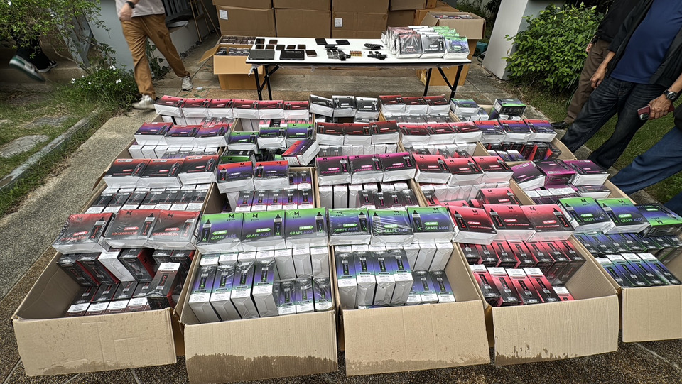 จากการตรวจค้นบ้านเดี่ยว 2 ชั้น พื้นที่ใช้สอยประมาณ 180 ตารางเมตร เจ้าหน้าที่พบของกลางเป็นบุหรี่ไฟฟ้าและน้ำยาบุหรี่ไฟฟ้าจำนวนประมาณ 70,000–80,000 ชิ้น รวมมูลค่าประมาณ 24,000,000 บาท พร้อมอาวุธปืนพกสั้น 2 กระบอก พร้อมเครื่องกระสุนปืนอีกหลายรายการ รวมทั้งโทรศัพท์มือถือ 8 เครื่อง