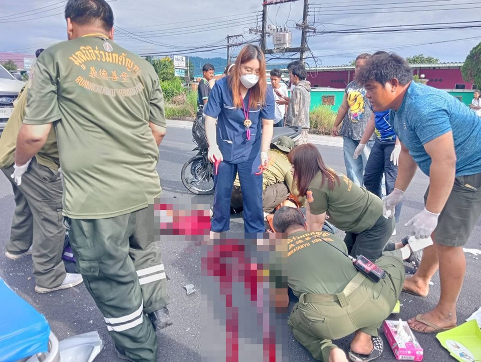 นาทีชีวิต! แพทย์หญิงช่วยเด็กชาย 15 ปี หลังถูกรถเก๋งยูเทิร์นตัดหน้าเจ็บสาหัสที่นครนายก